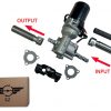 Universele Light Duty Elektrische stuurbekrachtiging kit. Motor wijzend boven de stuur as naar links kijkend vanaf de input kant (stuur kant). Als alternatief kan de motor ook onder de stuur as, wijzend naar rechts worden geplaatst. Houd echter wel rekening met de afmetingen (zie afbeelding 4)